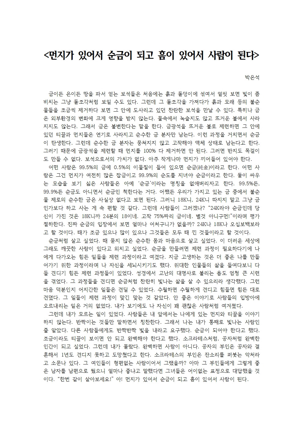 순금이 되어야 한다고 했다.