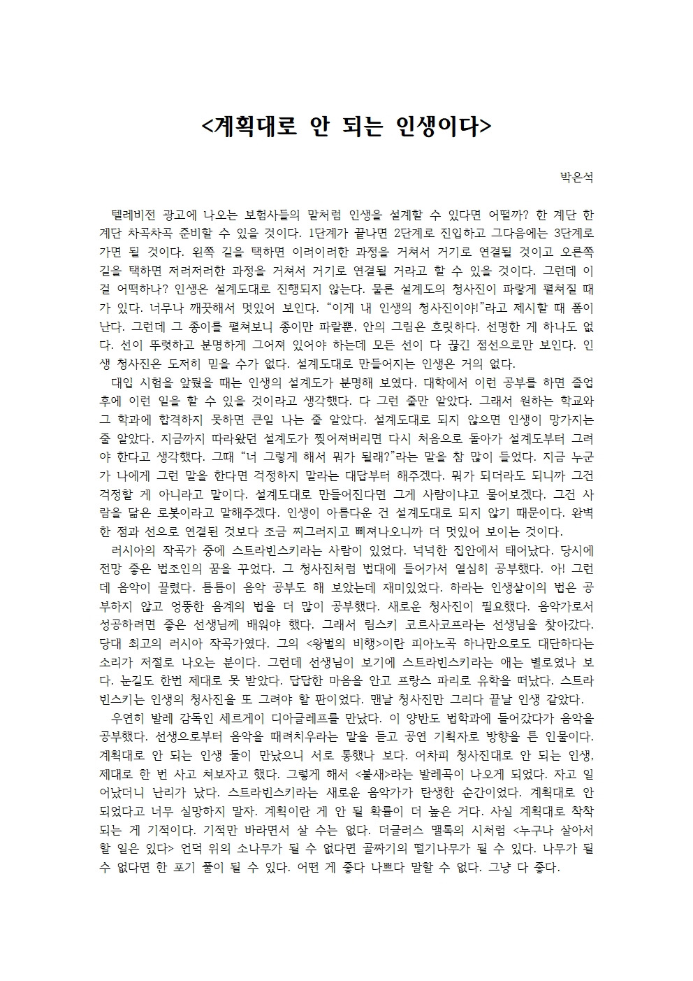 인생이 아름다운 건 설계도대로 되지 않기 때문이다.