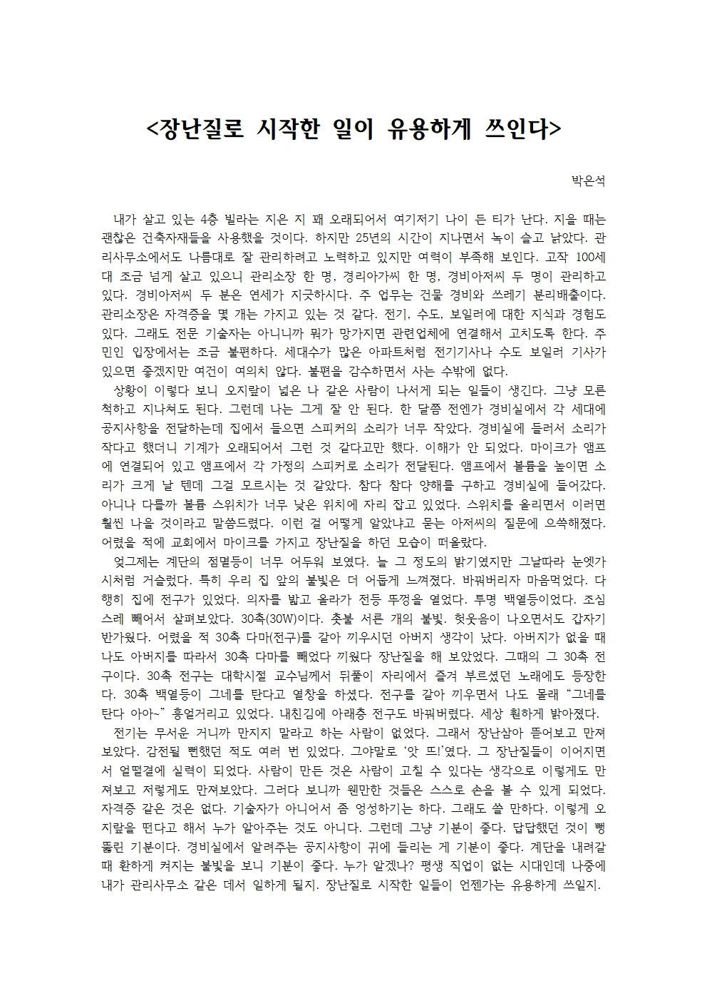 평생 직업이 없는 시대인데 나중에 내가 관리사무소 같은 데서 일하게 될지.
