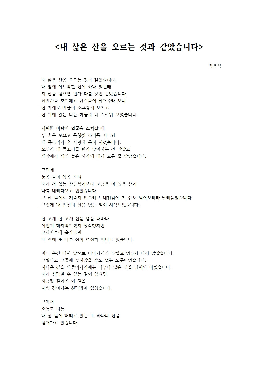 내 삶은 산을 오르는 것과 같았습니다
