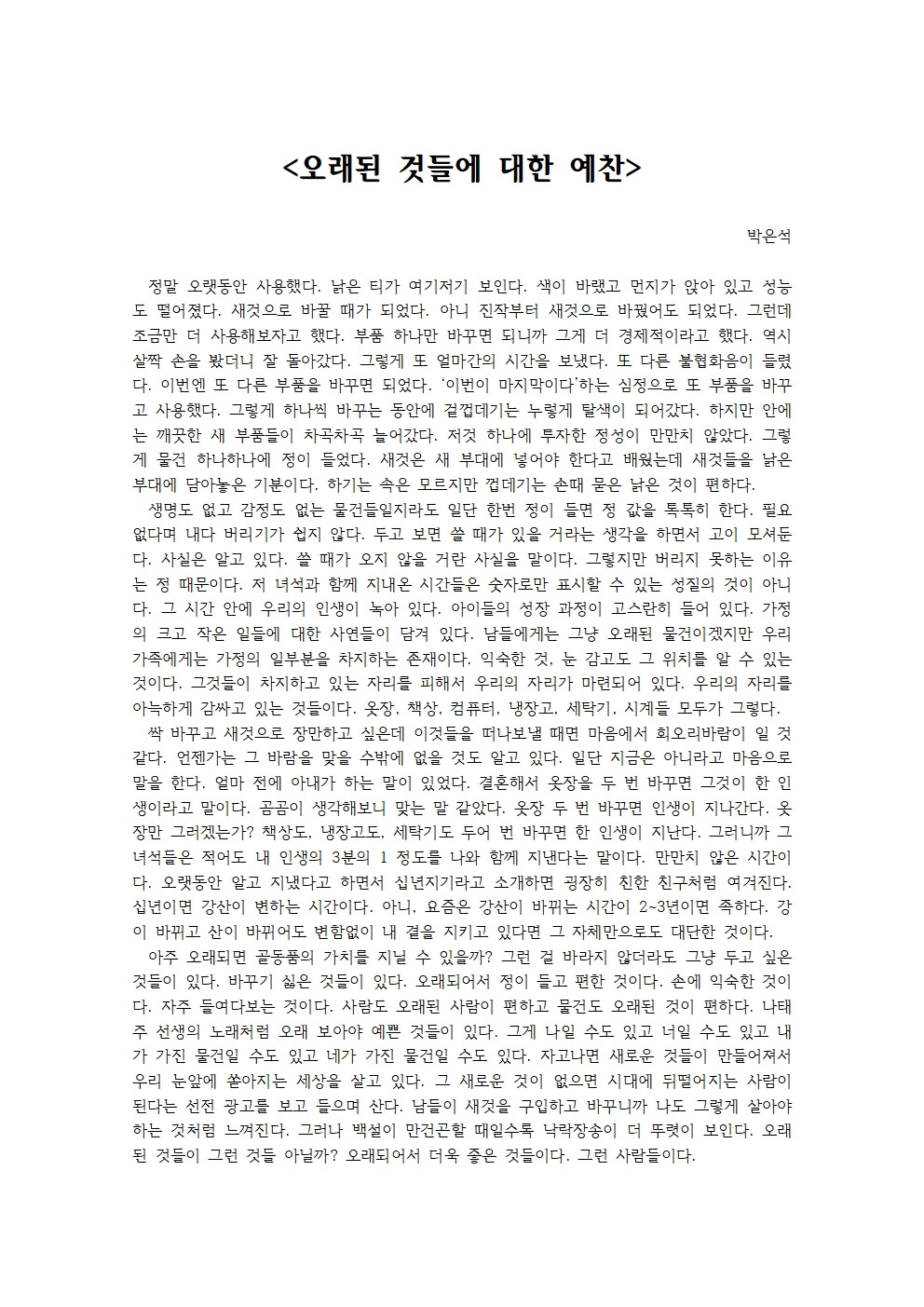 오래된 것들에 대한 예찬