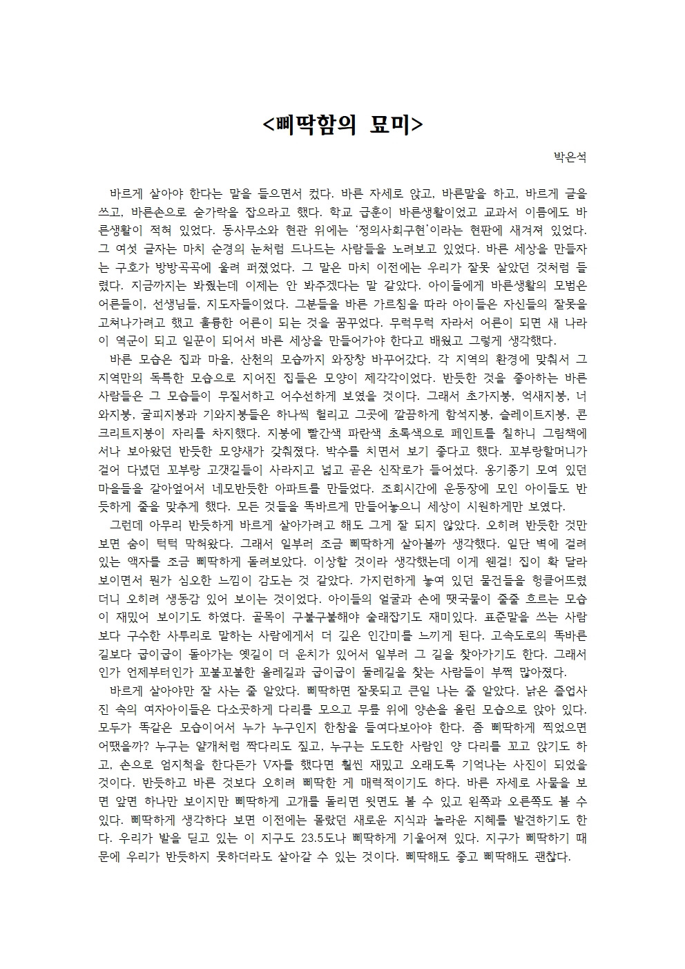 바르게 살아야 한다는 말을 들으면서 컸다.