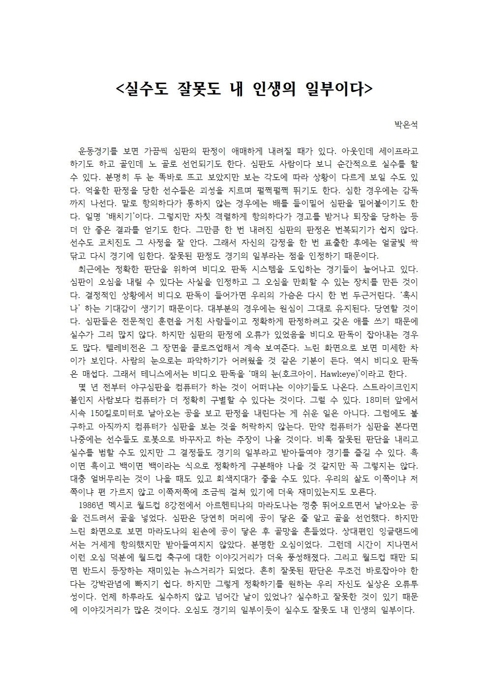 오심도 경기의 일부이듯이 실수도 잘못도 내 인생의 일부이다.