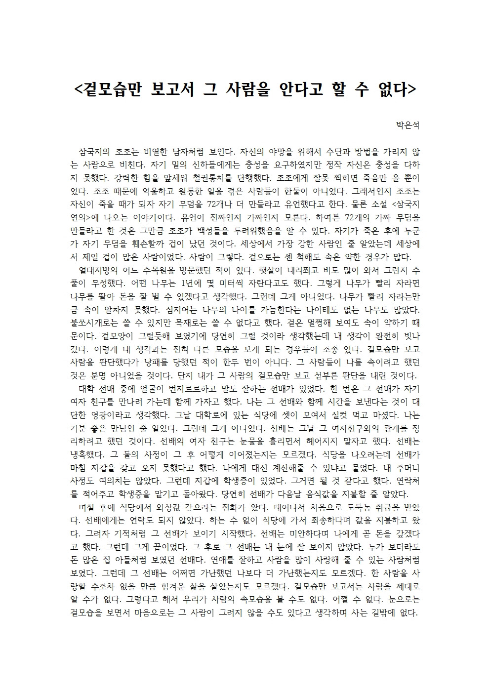 겉모습만 보고서 그 사람을 안다고 할 수 없다