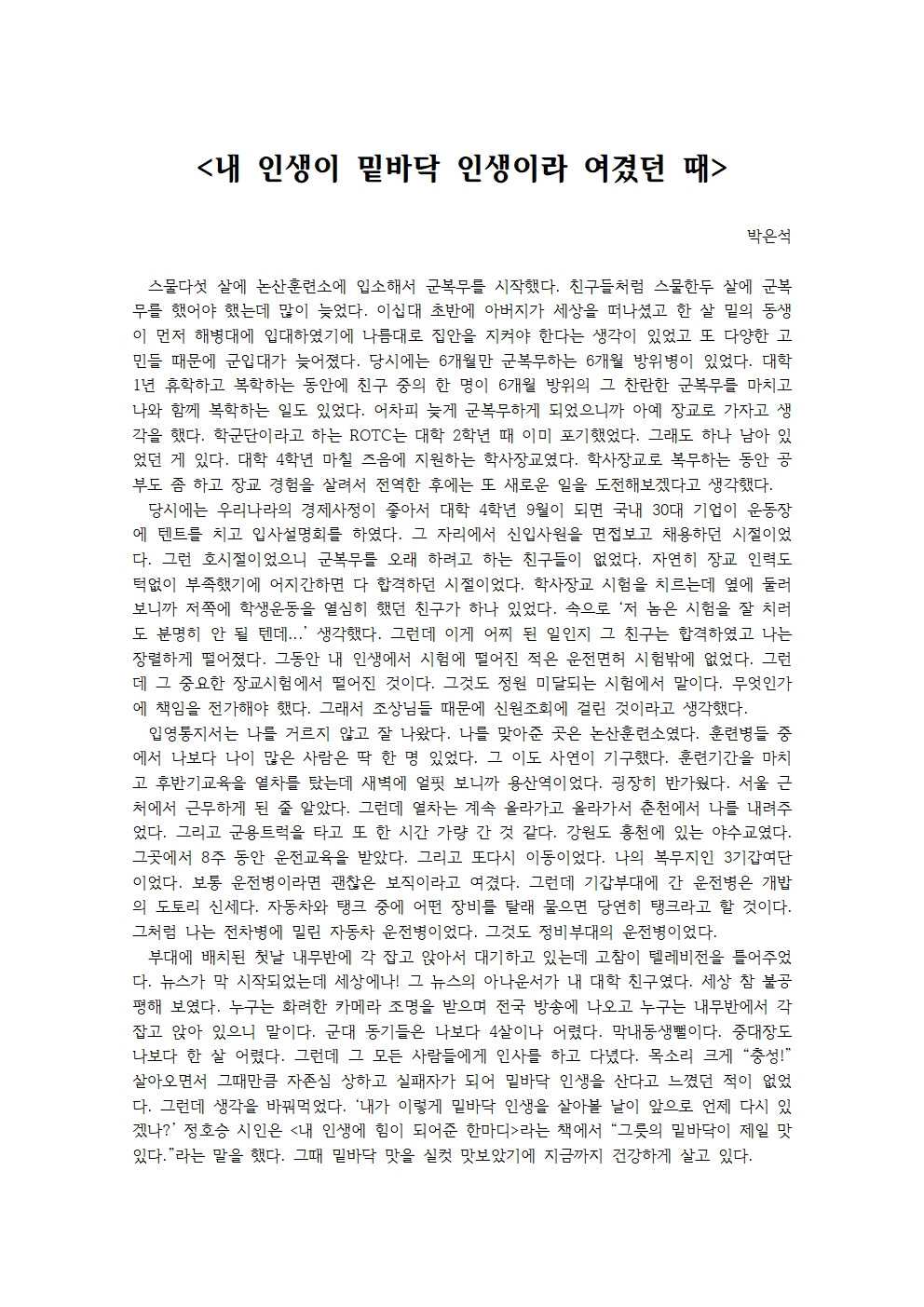 그때 밑바닥 맛을 실컷 맛보았기에 지금까지 건강하게 살고 있다.