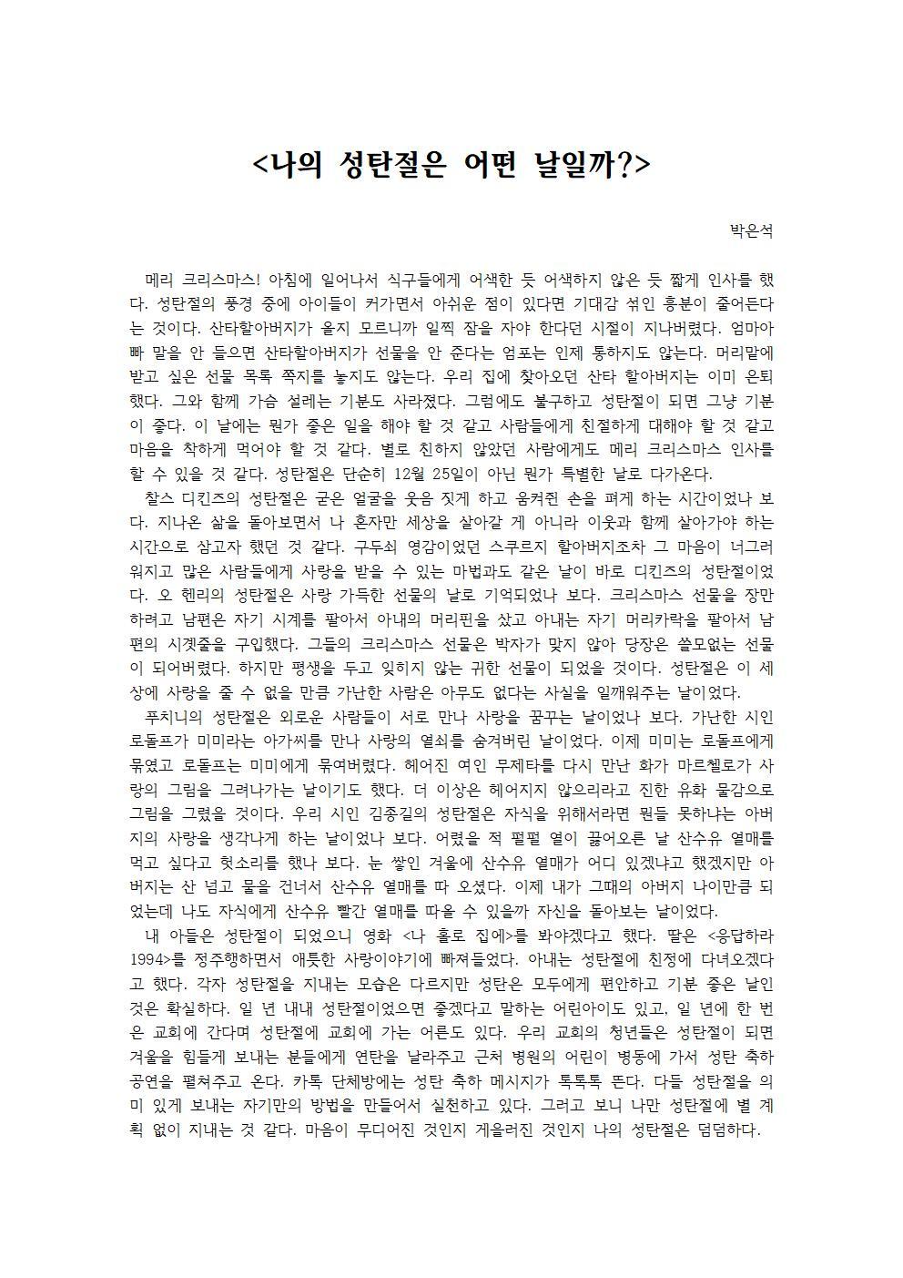 각자 성탄절을 지내는 모습은 다르지만 성탄은 모두에게 편안하고 기분 좋은 날인 것은 확실하다.