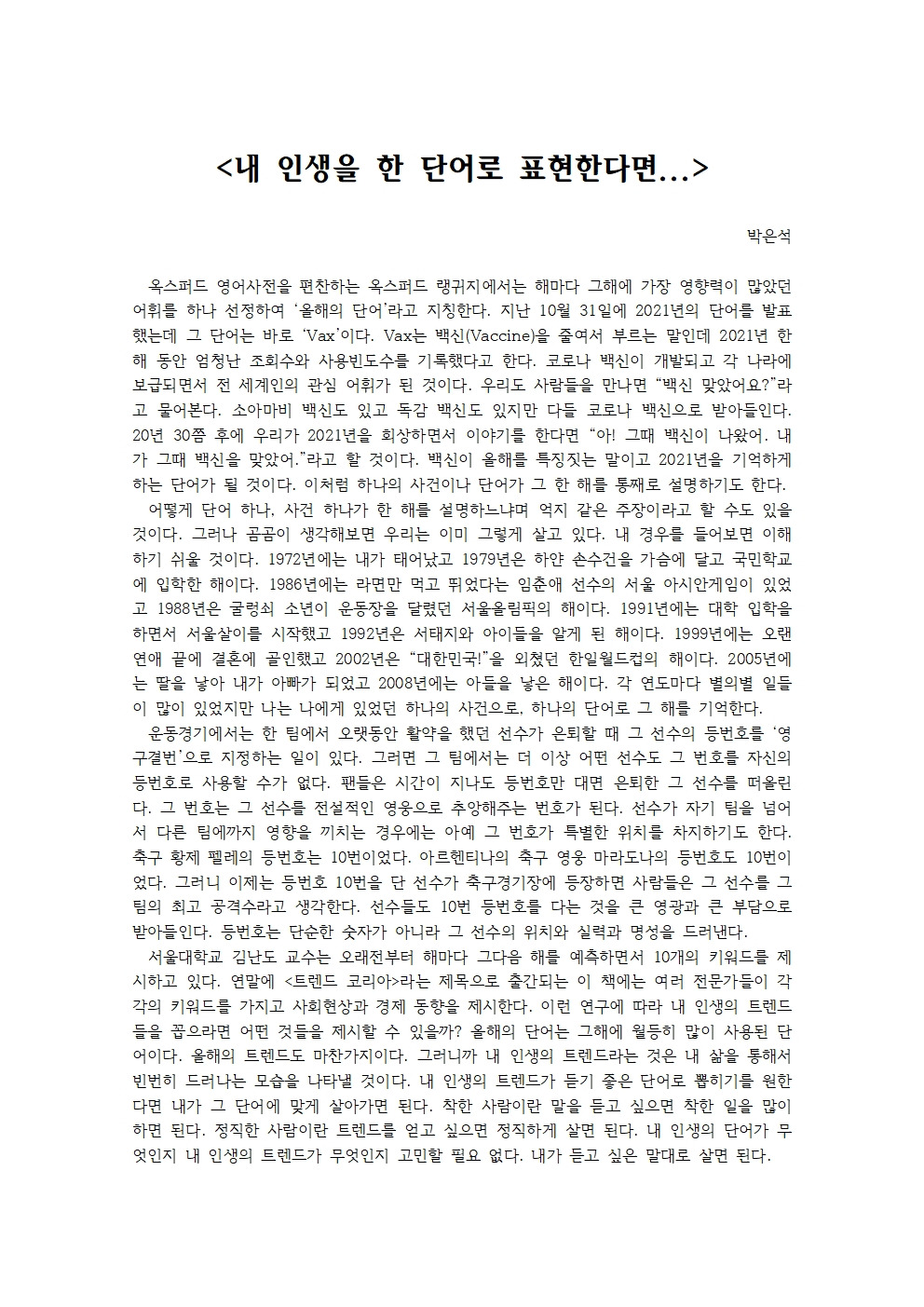 내 인생의 트렌드가 듣기 좋은 단어로 뽑히기를 원한다면 내가 그 단어에 맞게 살아가면 된다.