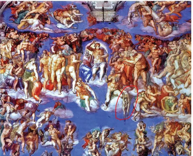 성 시스티나 성당 천정에 <천지창조>를 그린 미켈란젤로는 최후의 심판 때 살가죽이 벗겨지는 심판을 받을 사람은 바로 자신이라며 대담하게 자신의 모습을 그려놓았다.