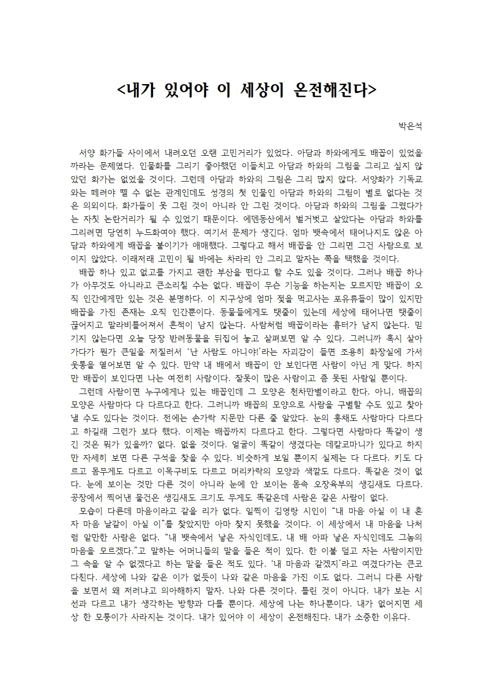 내가 있어야 이 세상이 온전해진다