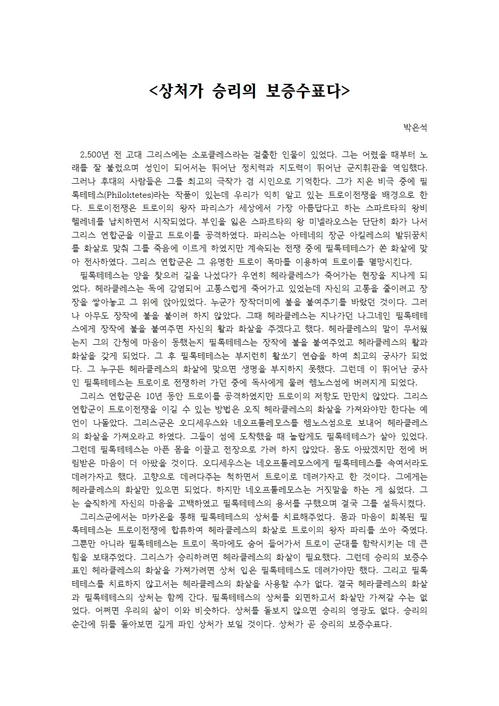 필록테테스의 상처를 외면하고서 화살만 가져갈 수는 없었다.