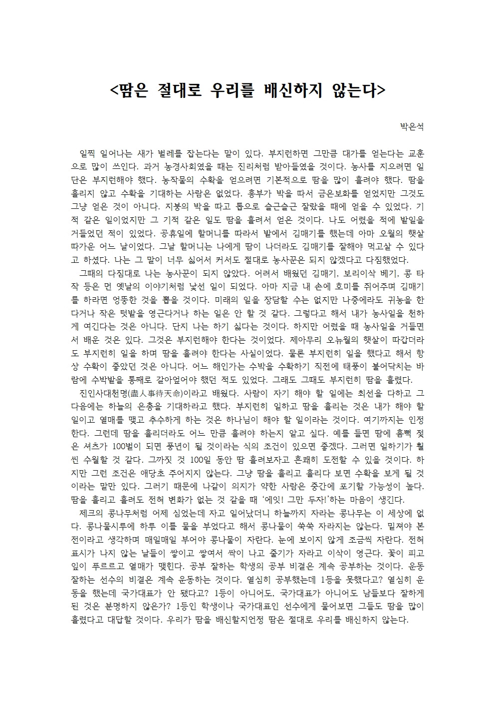 나는 그 말이 너무 싫어서 커서도 절대로 농사꾼은 되지 않겠다고 다짐했었다.