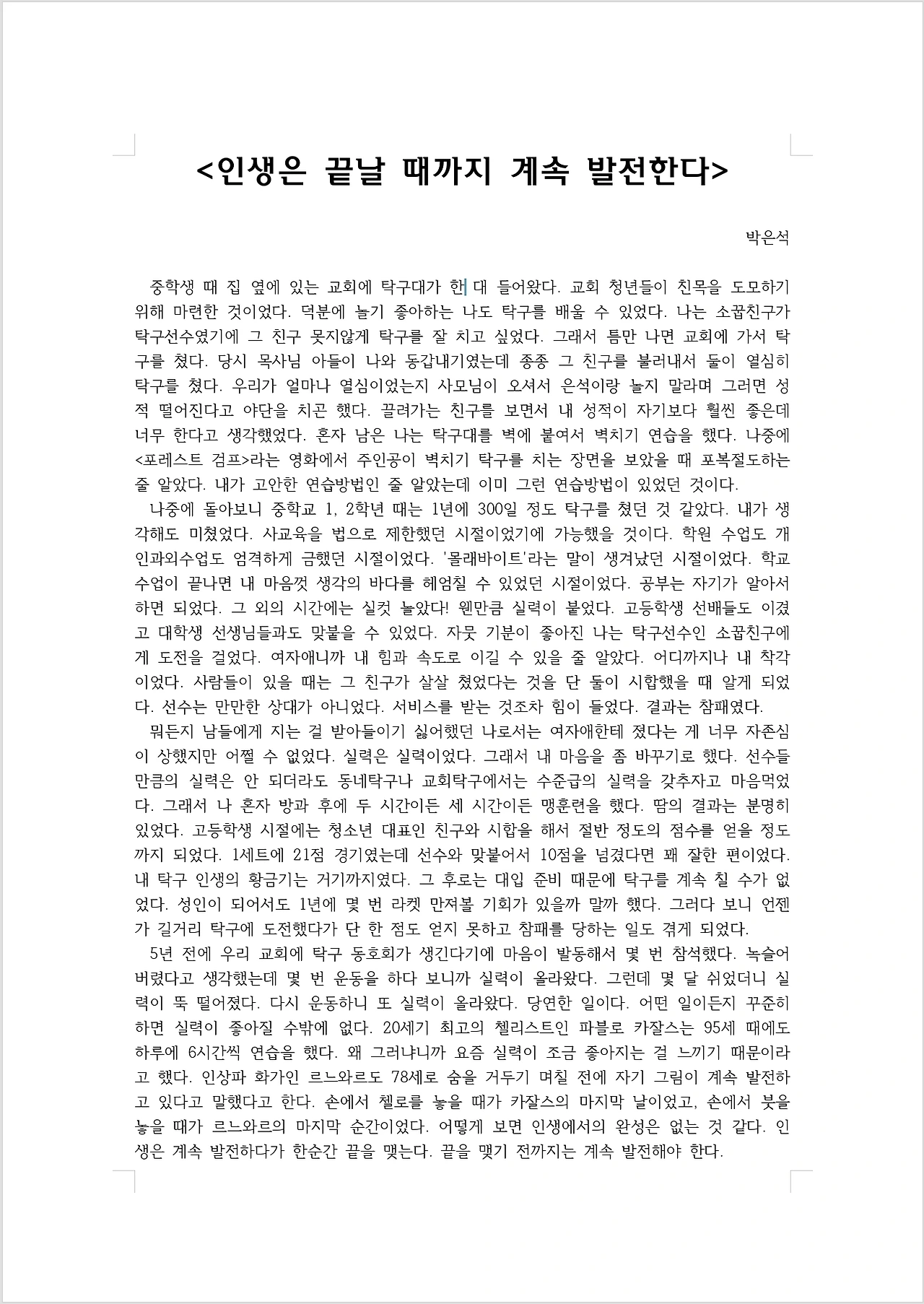 그 후로는 대입 준비 때문에 탁구를 계속 칠 수가 없었다.