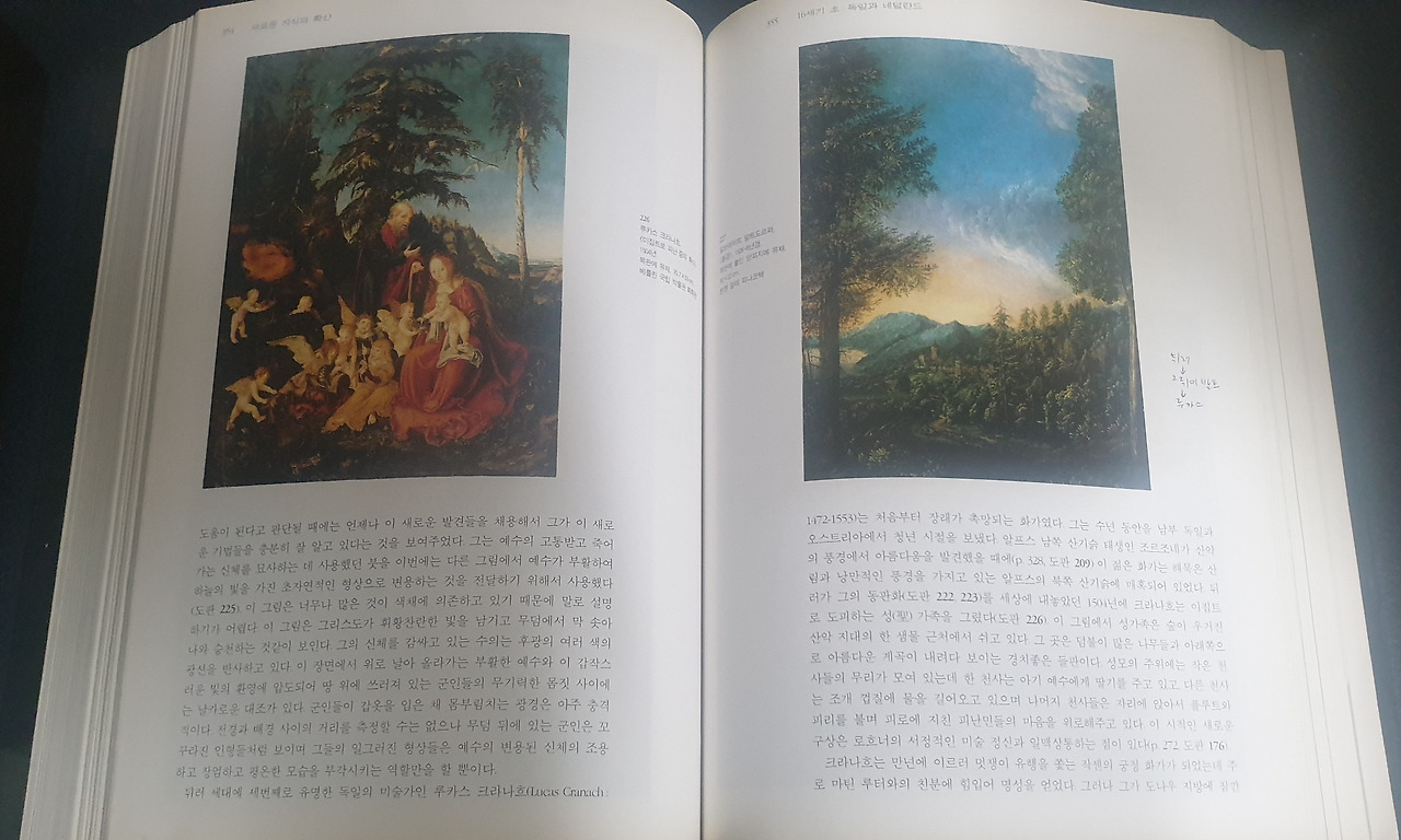 600페이지가 넘는 방대한 분량에 깨알 같은 글씨로 여러 그림들을 소개하며 서양미술의 변천과정을 설명해 준다.