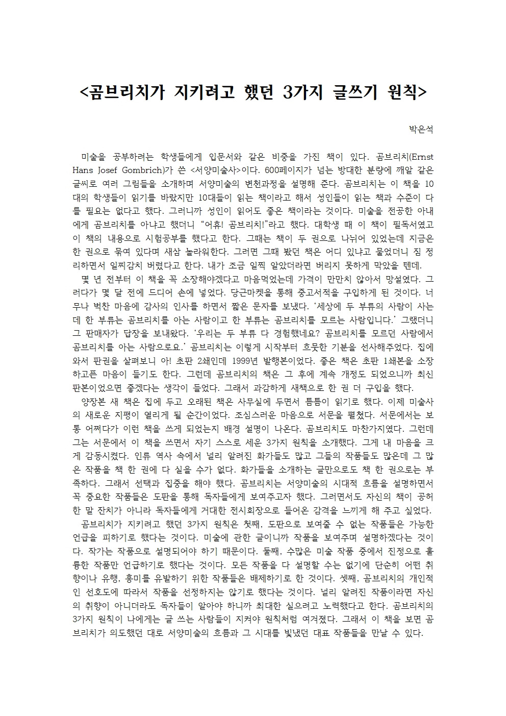 곰브리치의 3가지 원칙이 나에게는 글 쓰는 사람들이 지켜야 원칙처럼 여겨졌다.