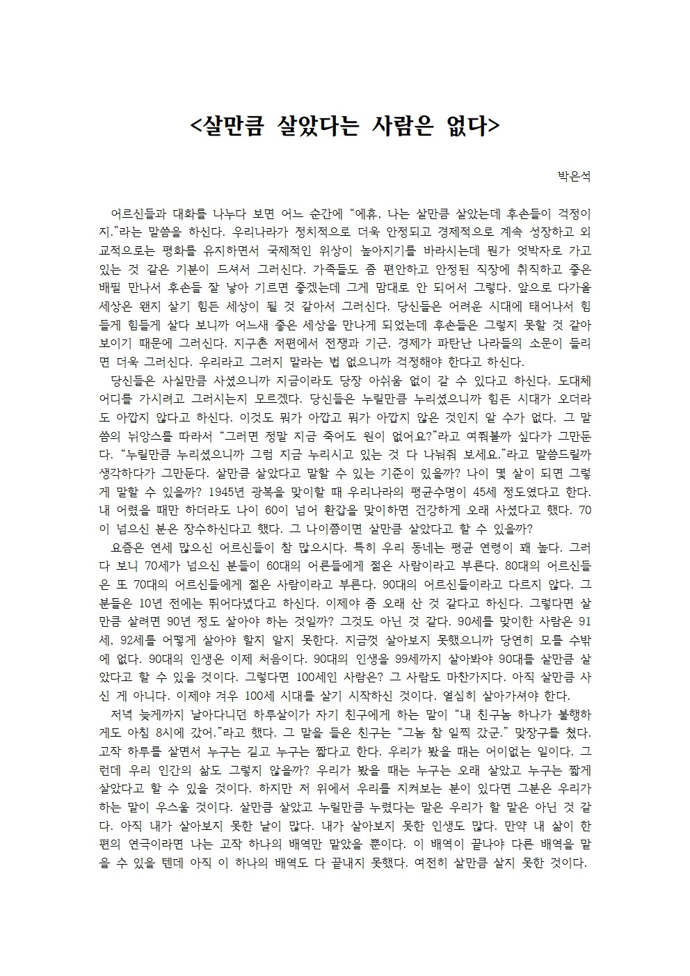 살만큼 살았고 누릴만큼 누렸다는 말은 우리가 할 말은 아닌 것 같다.