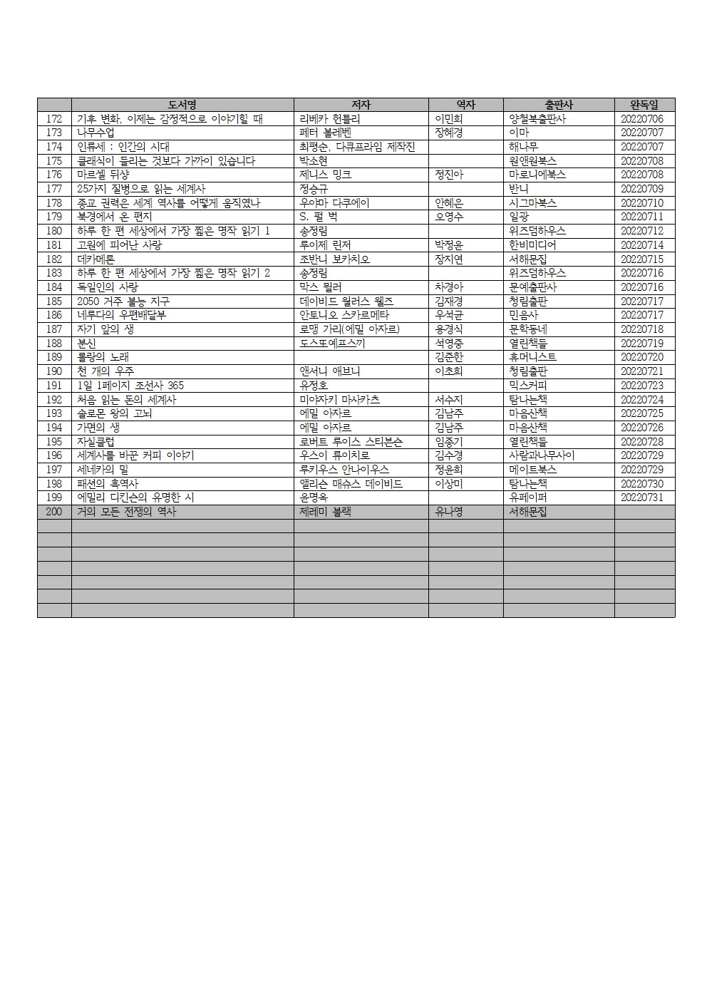 1년 200권 독서운동 14년차 2022년 7월 독서목록(순번은 6월 독서목록에 이어서)