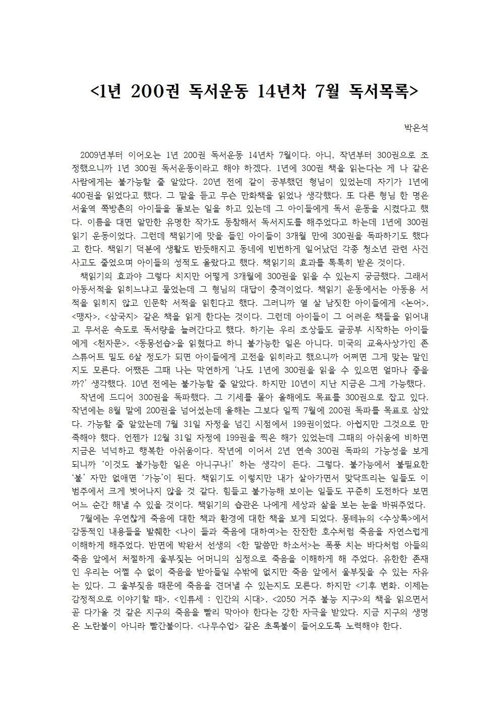 2009년부터 이어오는 1년 200권 독서운동 14년차 7월이다.