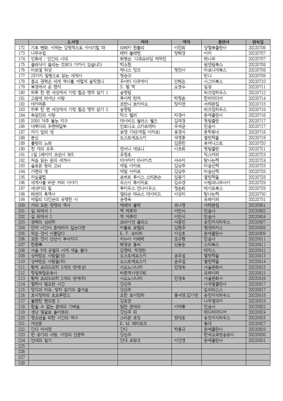 1년 200권 독서운동 14년차 2022년 8월(순번은 7월 독서목록에 이어서)