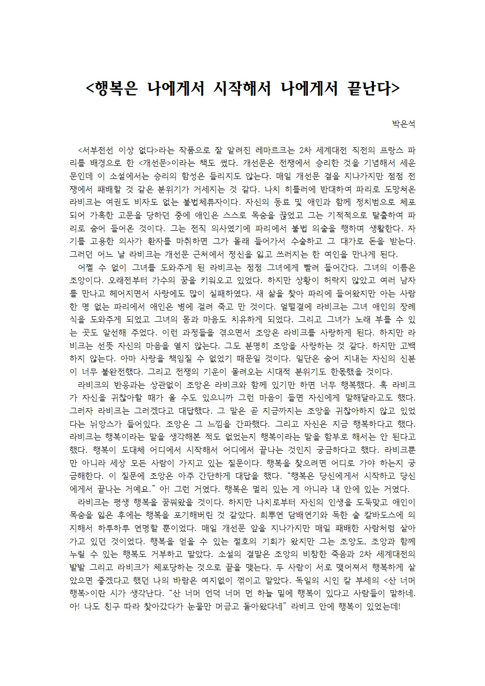 라비크는 행복이라는 말을 생각해본 적도 없었는지 행복이라는 말을 함부로 해서는 안 된다고 했다.