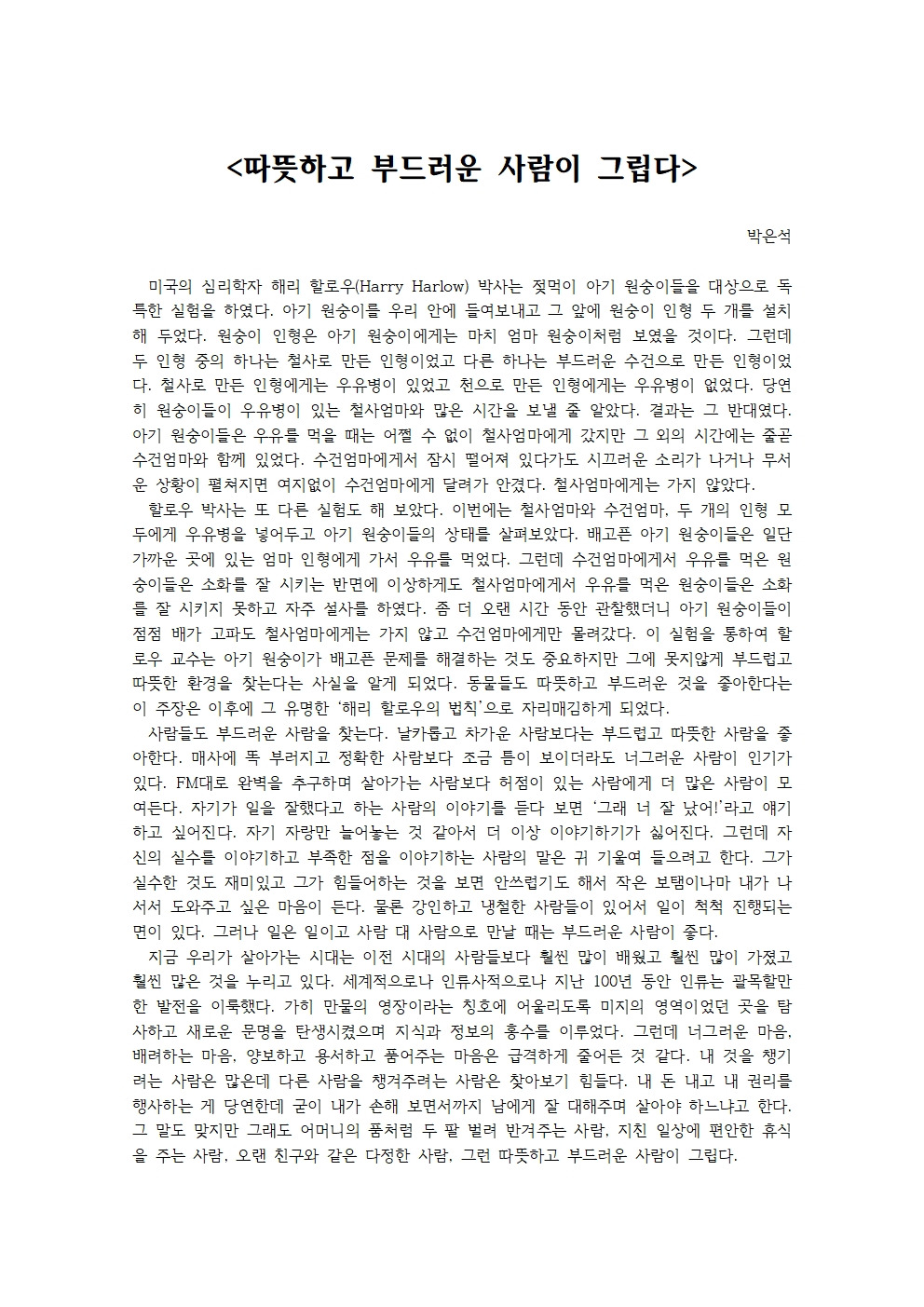 그 말도 맞지만 그래도 어머니의 품처럼 두 팔 벌려 반겨주는 사람, 지친 일상에 편안한 휴식을 주는 사람, 오랜 친구와 같은 다정한 사람, 그런 따뜻하고 부드러운 사람이 그립다.