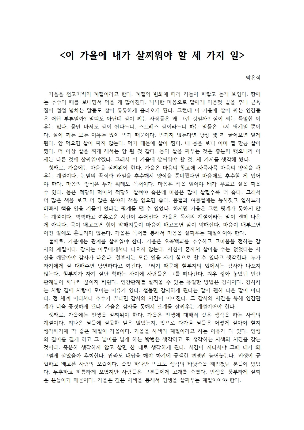 이 가을에 내가 살찌워야 할 세 가지