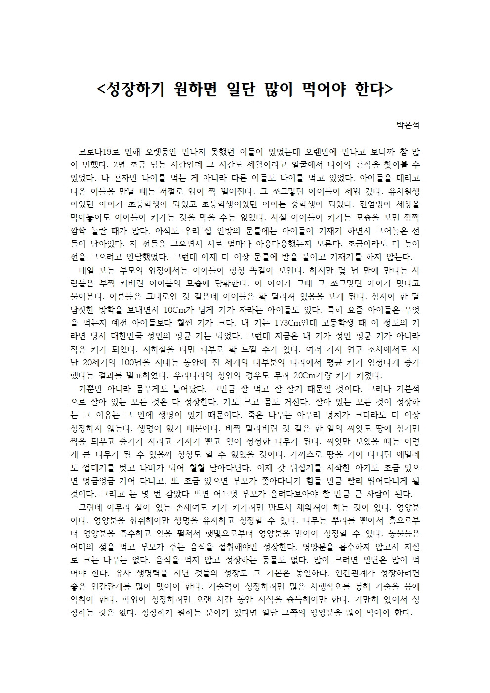 특히 요즘 아이들은 무엇을 먹는지 예전 아이들보다 훨씬 키가 크다.