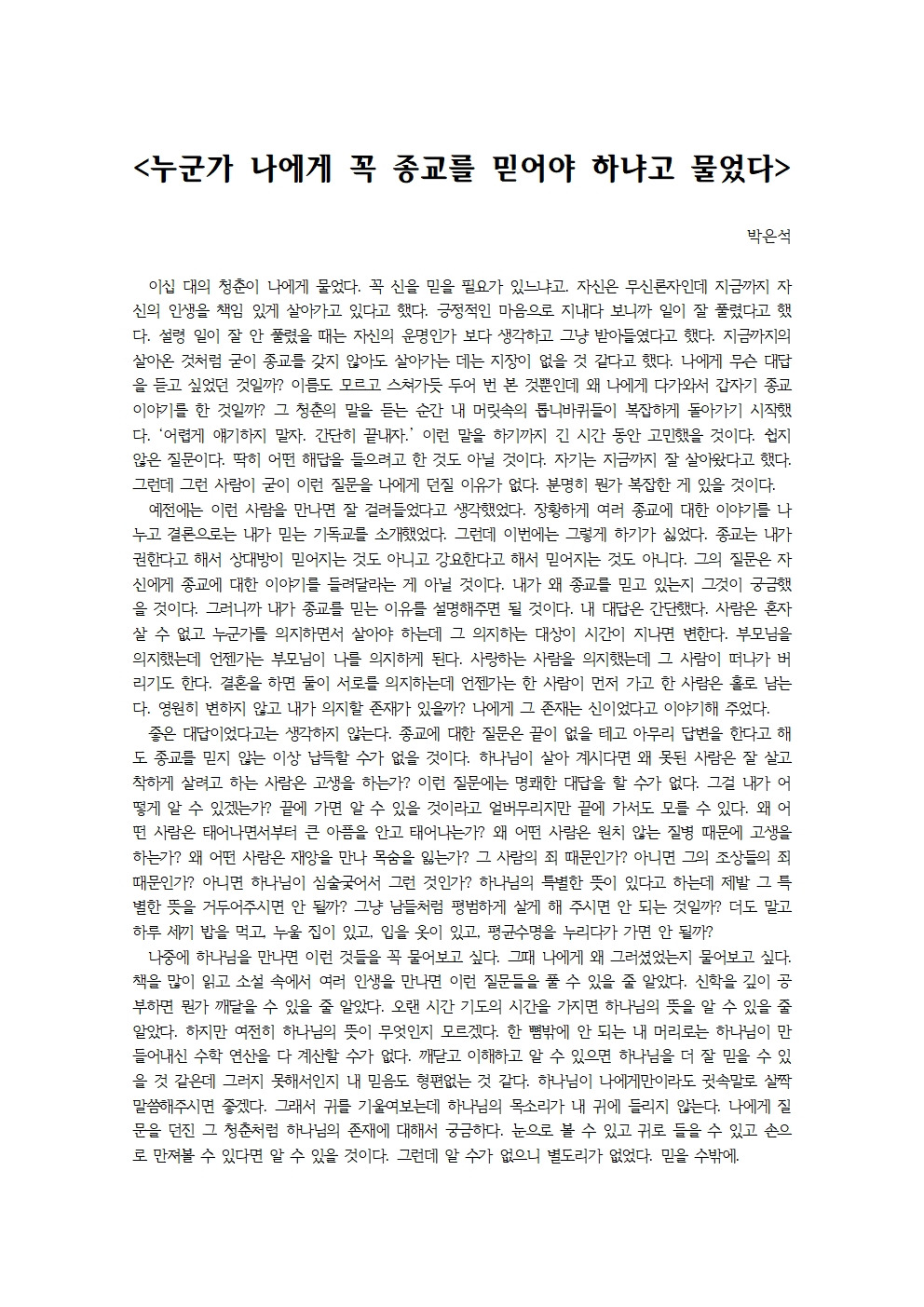 나에게 질문을 던진 그 청춘처럼 하나님의 존재에 대해서 궁금하다.