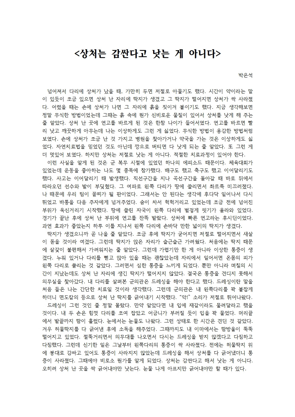 연고를 바르면 빨리 낫고 깨끗하게 아무는데 나는 이상하게도 그런 게 싫었다.