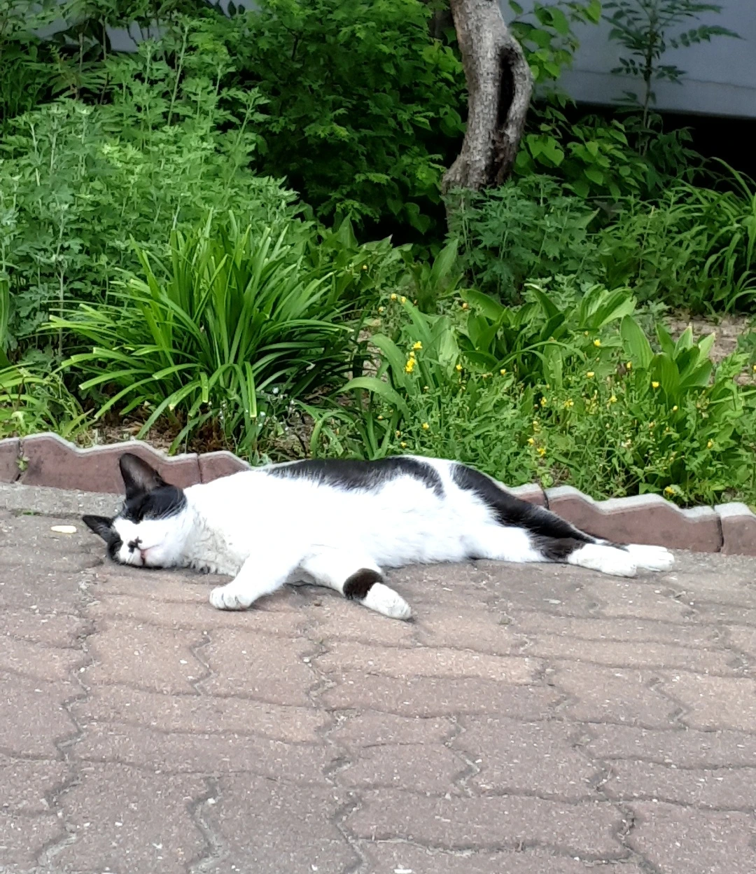 2. 나중에 동네 사람들한테 물어보니 그 고영희 씨는 그 동네 아파트 구역을 장악한 길냥이로서 동네 개들도 그 고양이에게 함부로 덤비지 못한다고 한다. 하지만 넉살도 좋고 애교도 많아 동네 사람들의 사랑을 담뿍 받고 살고 있단다. 그리고 인도 한가운데서 뻗어 자고 있을 땐 동네 주민들이 알아서 밖으로 살짝 피해서 지나간다고 한다.