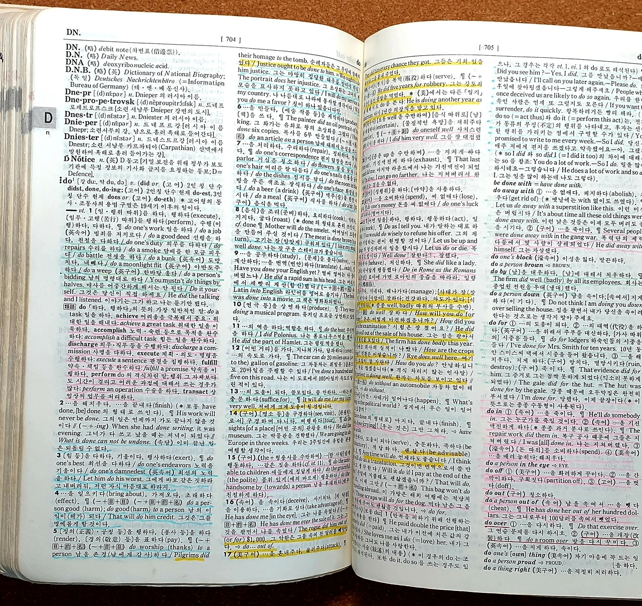 어휘공부하면서 영어사전을 씹어먹진 못했어도 사전이 너덜너덜 해 지도록 공부했다.