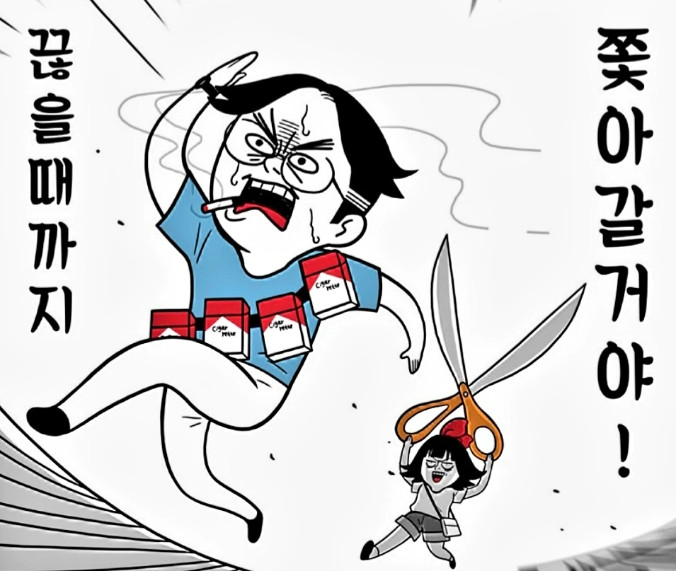 단전 깊은 곳에서 뿜어져 나오는 나의 사자후에 맛나게 담배 피우던 그 아이는 그 자리에서 얼음이 되었다. 종철이의 손가락 사이에서 태우던 담배만이 바람에 조금씩 타들어갔다.