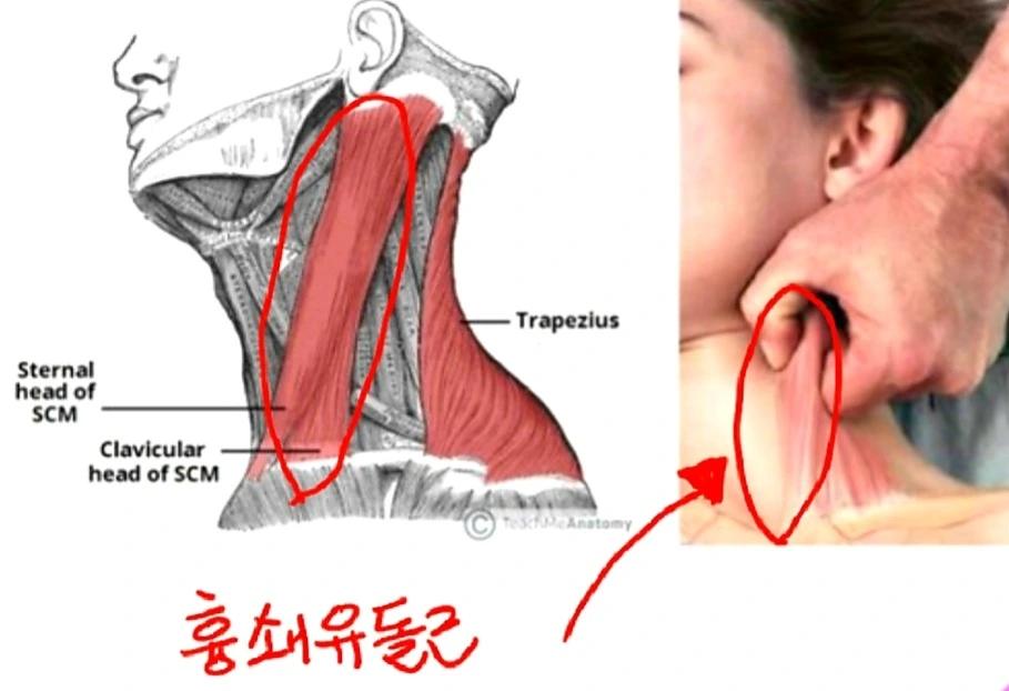 흉쇄유돌근을 목빗근이라고 하는데 나는 어릴 때부터 얼굴이 크다라고 놀림을 받은 후부터(내 얼굴이 큰 게 아니라 사촌 언니들 얼굴이 너무 작은 거였다!) 흉쇄유돌근을 새끼손가락 쪽 손날로 자주 꾹꾹 눌러주었다. 화장실 갈 때마다 거울 앞에서 30초씩 양쪽 흉쇄유돌근을 손으로 눌러주시라. 어느 날 갸름해진 나의 턱선을 발견할 것이다. 음, 이러다 공중화장실에서 거울을 보며 흉쇄유돌근을 누르고 있는 여성을 본다면? 그 사람은 '나'이거나 '나의 독자분'이거나 둘 중 하나일지도 모른다.
