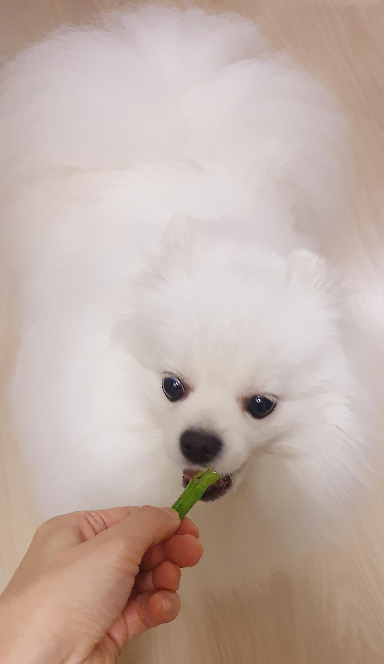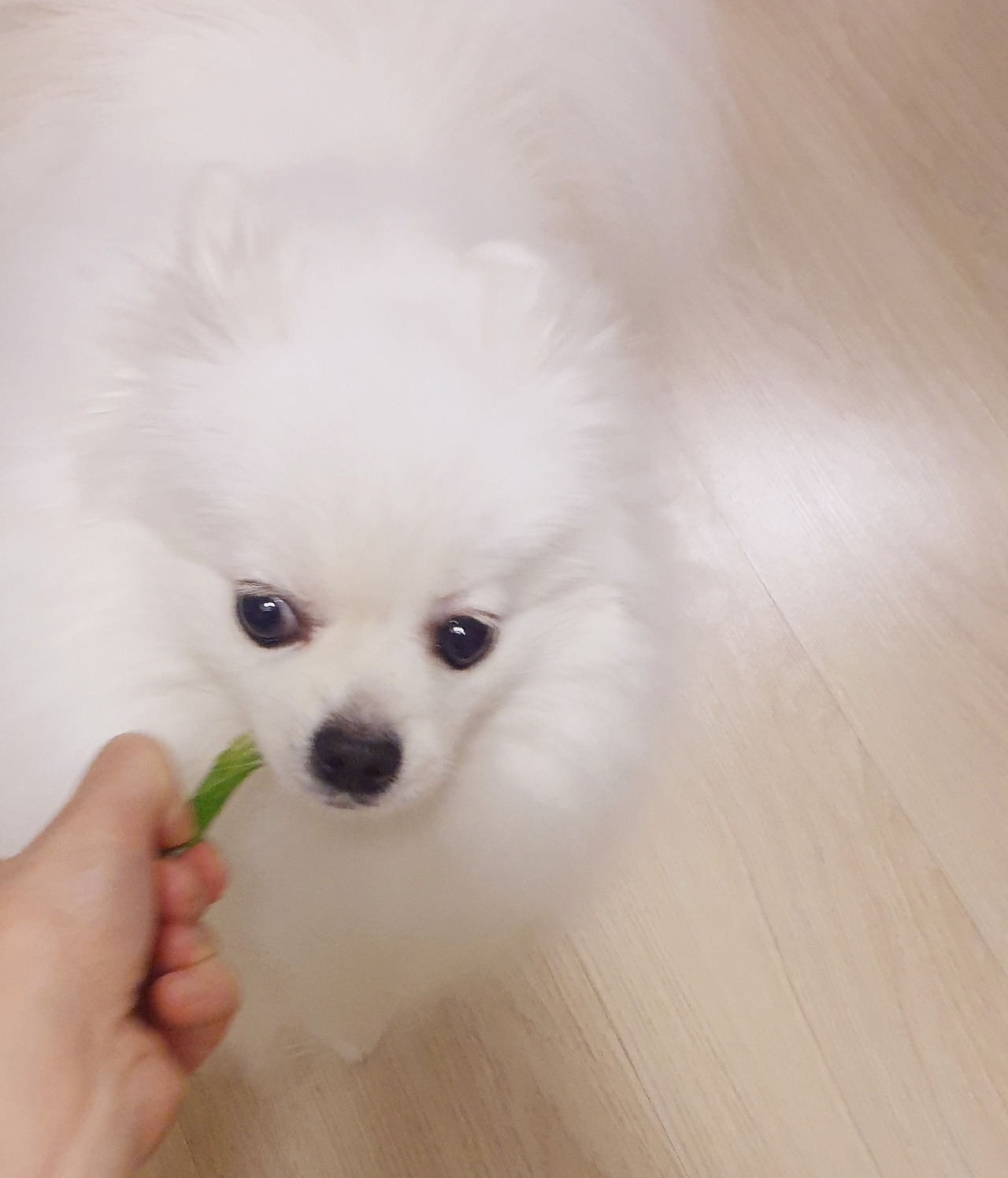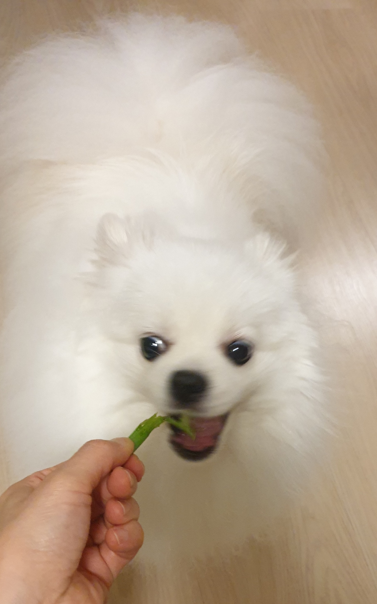 *물에 데쳐서 적당히 익힌 아스파라거스는 강아지에게 급여가능한 채소다. 비타민 C가 많고 면역력을 높이는데 도움을 준다.(단지 가격이 비쌈)