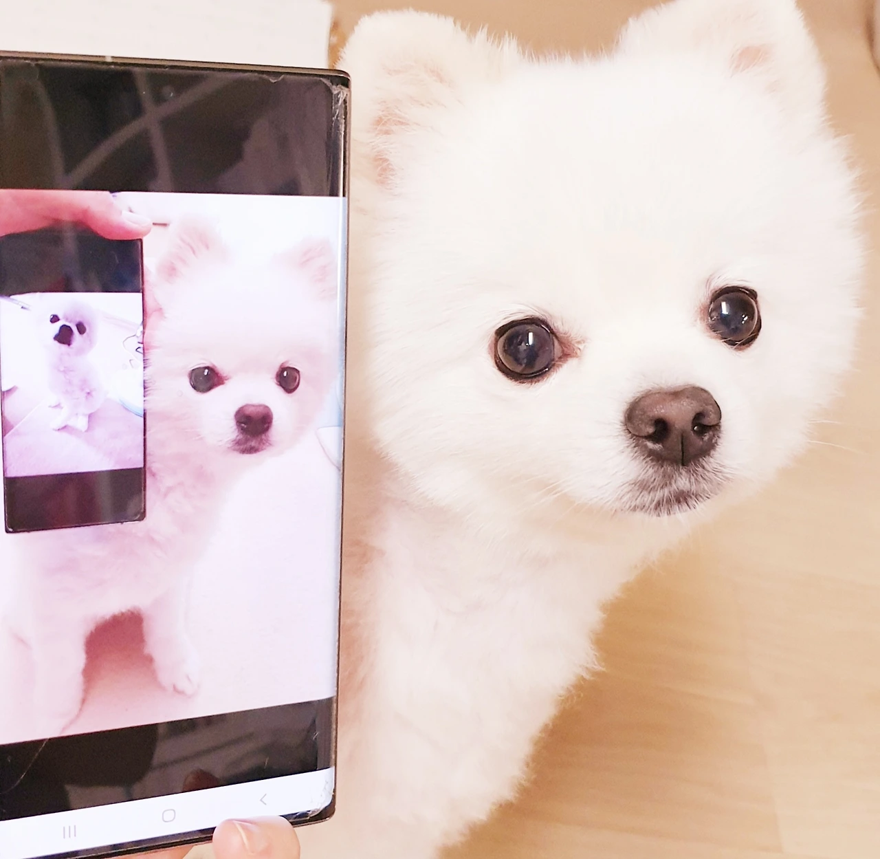 뽕이는 휴대폰만 들이대면 사진 찍는 걸 알고선 표정이 바로