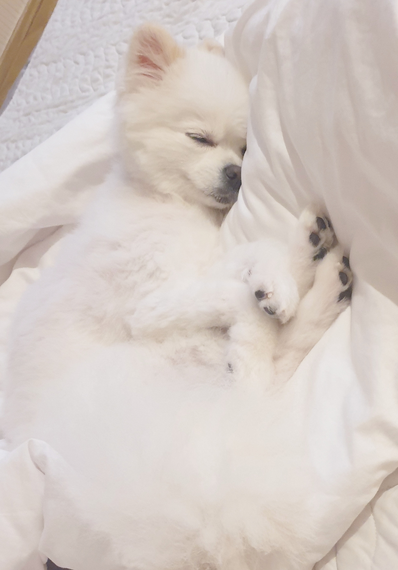집안에서 유일하게 놀고먹는 개상전 뽕이 씨는 우리 집에서 제일 많이 잠을 잔다. 하루 16시간 이상을 잔다는 고양이보다도 더 잔다.
