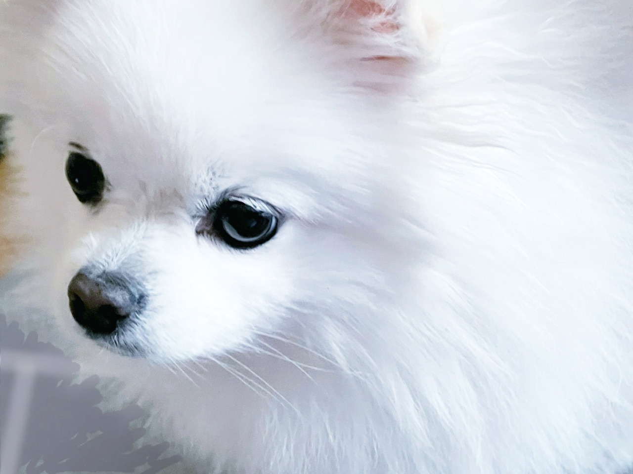 뽕이 씨도 사진 찍을 때 45도 각도의 모습이 제일 예쁘다. 45도 각도면 오른쪽이든 왼쪽이든 상관없다. 큰 눈과 여리여리한 쌍꺼풀, 그리고 오뚝한 콧날. 역시 미견이다. 강아지도 사진 각도 하나에서 코봉이가 되기도 하고 미견이 되기도 한다. 역시 사진은 각도가 생명이다. 거기에 사진을 찍어주는 집사의 열정까지추가하면 캬~ 그 사진은.. 더 이상 말해 뭘 할까?