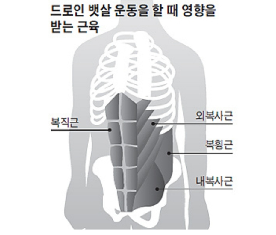 크런치나 플랭크 또는 스쿼트 동작에 비해 드로우 인은 운동 강도는 약하지만 일상 생활에서 계속 적용할 수 있기 때문에 복부 근육을 지속적으로 만드는데 효과적이다. 특히 신진대사가 현격하게 느려지는 나와 같은 중년층에게 추천한다.