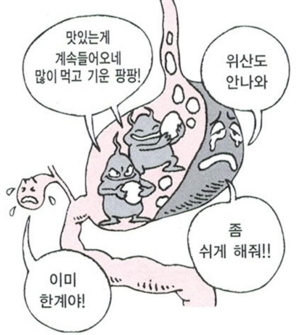 이렇게 많이 먹는 식습관은 나이가 들어도 계속 되었다. 그런데 언젠가 부터 많이 먹고 나면 명치가 막힌듯이 아프고 속이 더부룩해져서 소화제를 먹어야했고 위벽이 헐어 병원을 가기도 했다. 위 내시경을 해보니 위 내벽이 시뻘겋고 위출혈 흔적도 있었다. 그러고보니 나는 음식을 즐긴다기 보다는 집착에 가까울 정도로 많이 먹는 편이라주인 잘못 만난 위는 끊임 없이 음식이 공급되는 통에 제대로 쉬지도 못하고 초과근무를 해야만 했을 것이다. 그러다 결국 위도 파업을 하려고 한거겠지.