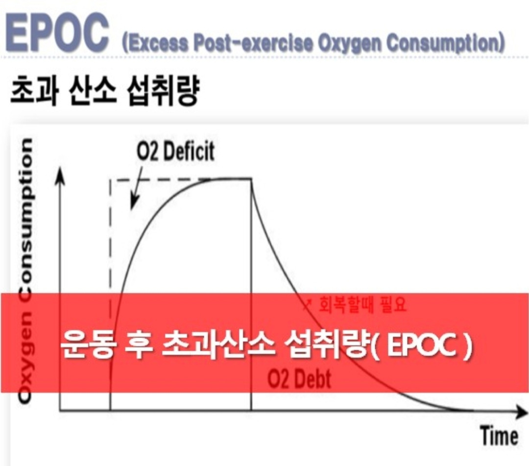 *EPOC(Excess Post-exercise Oxygen Consumption : 운동 후 초과 산소 소비량)
