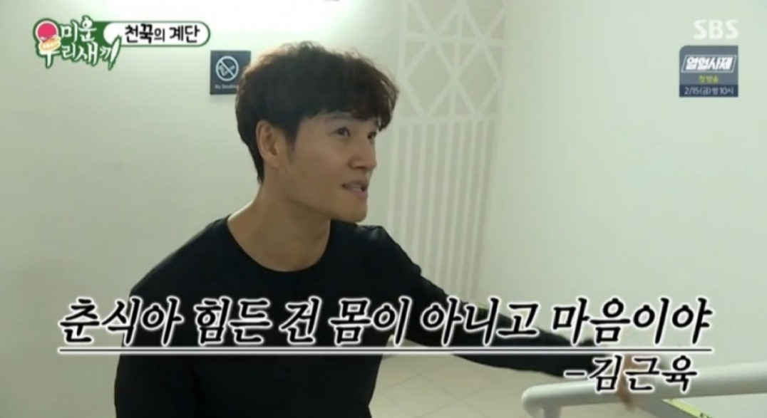 그때 김종국이 계단오르기를 힘겨워하는 동생들에게 했던 말들은 이랬다.