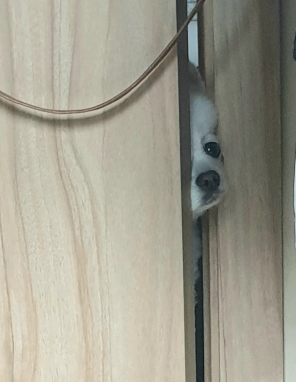 내가 방에 있을 땐 거실에서 잘 놀다가도 뽕이는 주기적으로 집사의 생존(?)을 확인한다. 문 사이로 빼꼼히~ 뽕이의 깜장콩 코만 하나 밀어 놓고 "집사가 뭐 하고 있나~ " 체크만 한다. 그러곤 다시 홱 고개를 돌리고 제 할 일 하는 뽕이.