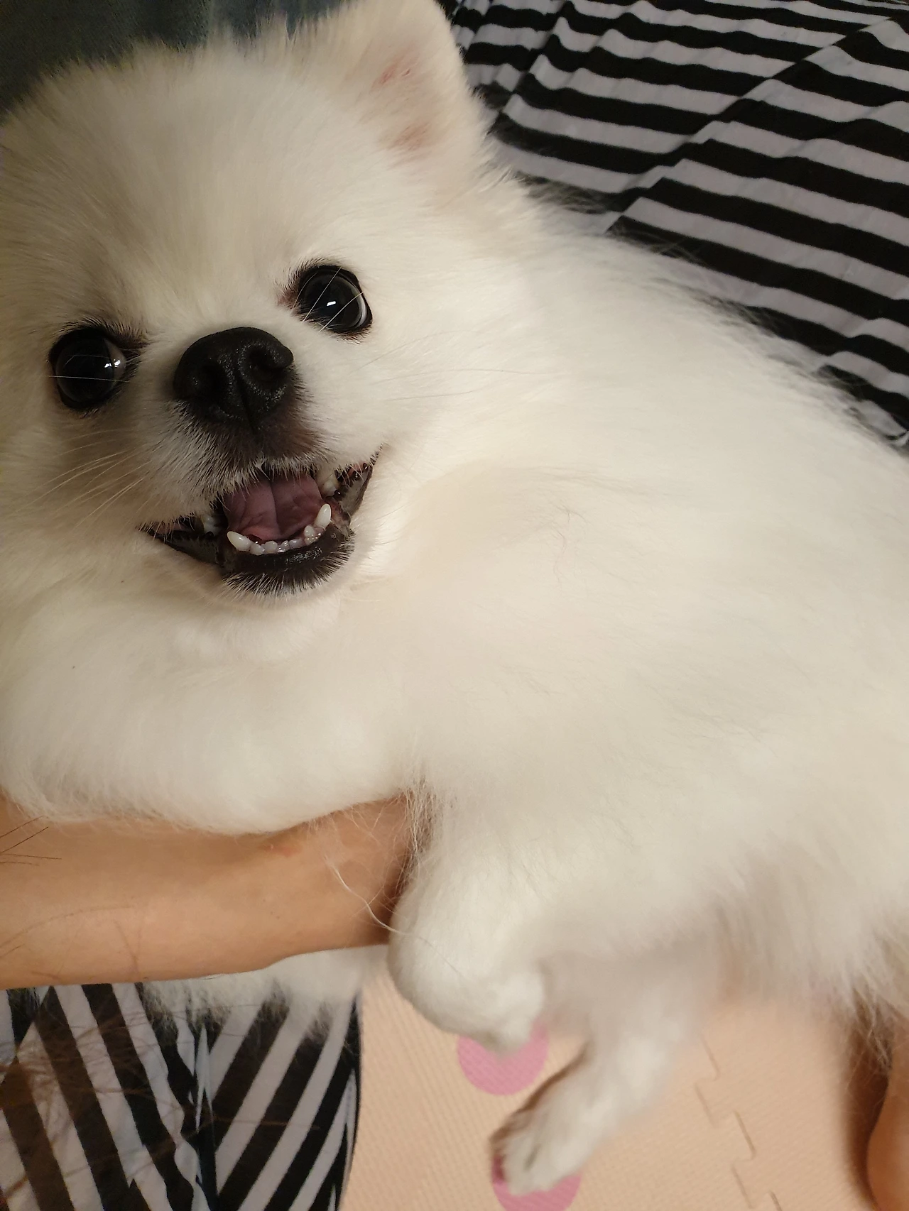 *강아지가 습관적으로 발바닥을 많이 핥으면 발바닥에 습진이 생길 수 있어 주의시켜야 한다. 예외적으로 강아지가 관절이 아플 때도 해당 발을 핥기도 하는데 다행히 뽕이는 그런 적이 없다.
