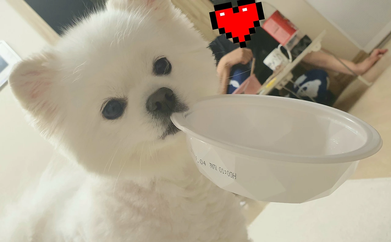 ㅡ집사 :...뽕이 씨, 방금 전에 사료와 간식 이미 한 사발 드셨잖아요ㅠ