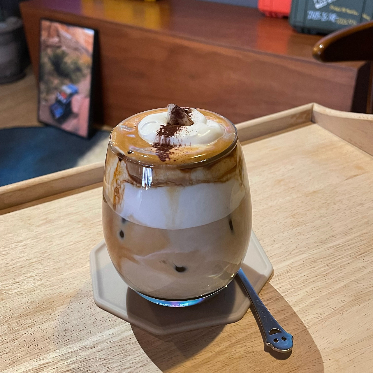 그래서 나는 바닐라 크림이 에스프레소에 스며들기를 기다린다. 달아져라.