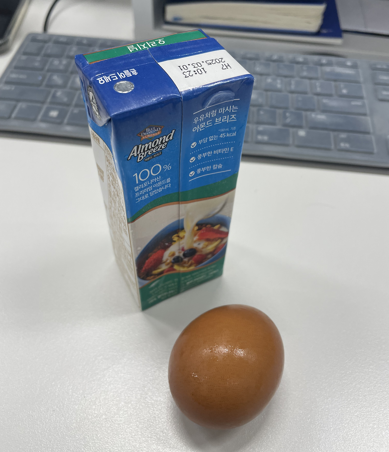 7. 간식 4시: 감동란 1개+아몬드브리즈 1개, 적게 자주 먹어야 기초대사량이 올라간대서 배고프지 않아도 먹었다.