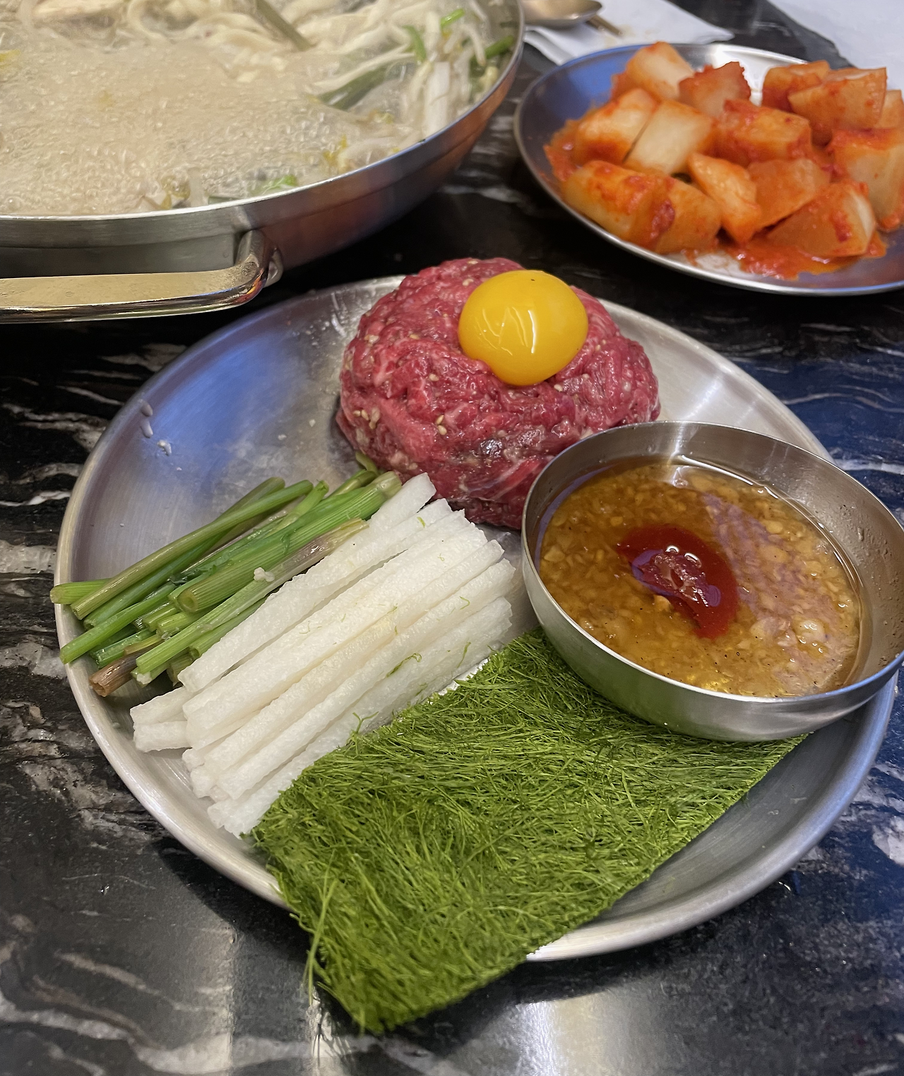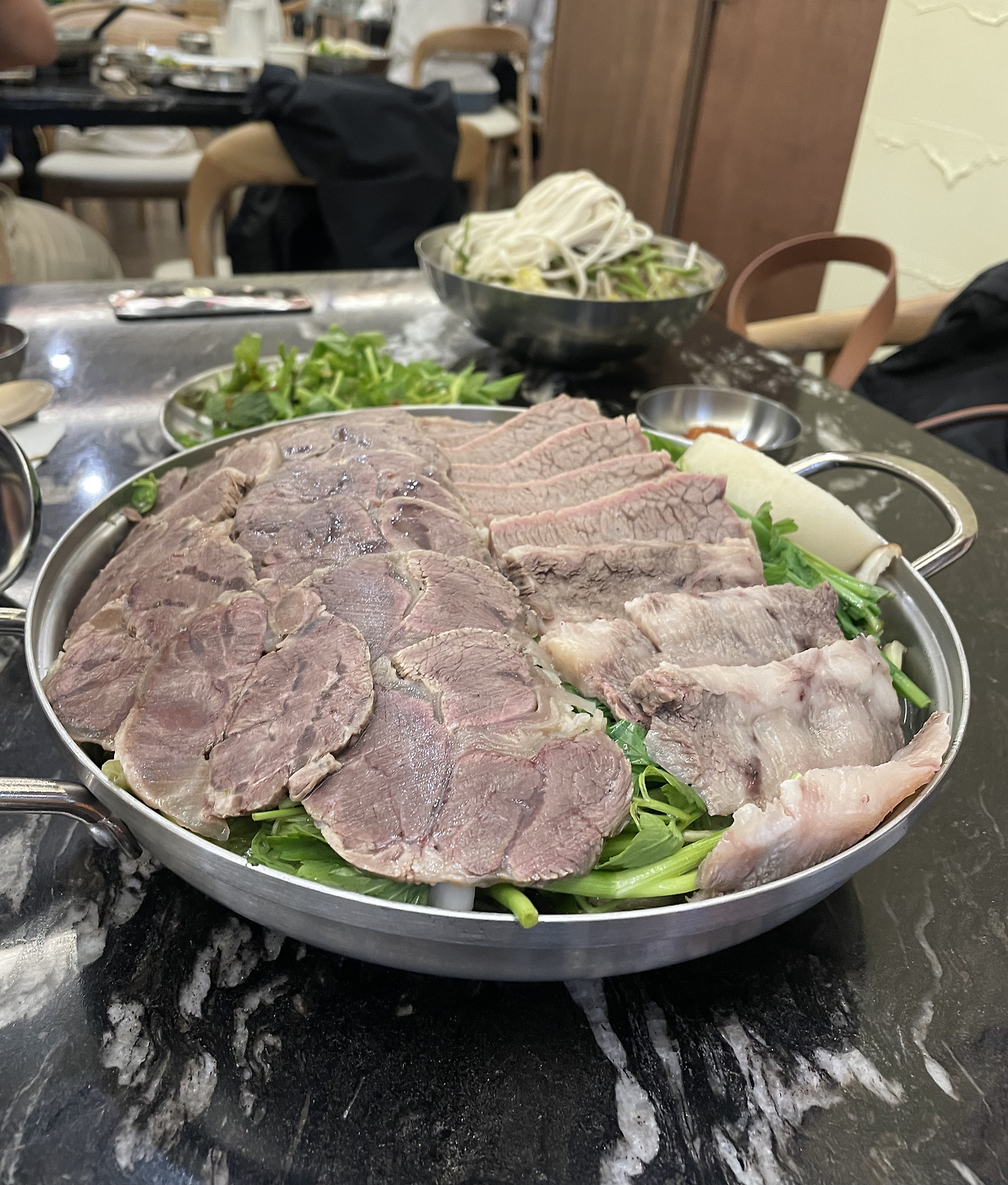 8. 저녁 6시: 미나리수육+육회, 팀원들과 건강한 저녁회식이었다! 정말 맛있는 능동미나리ㅠㅠ 먹기 전에 애사비 알약 1알 먹고 시작했다. 꼭꼭 씹어 먹는 것 잊지 않고 고기보다 버섯이랑 미나리를 더 많이 먹었다. 다만 좀 걱정스러운 건 식사시간이 6시를 넘긴 것.