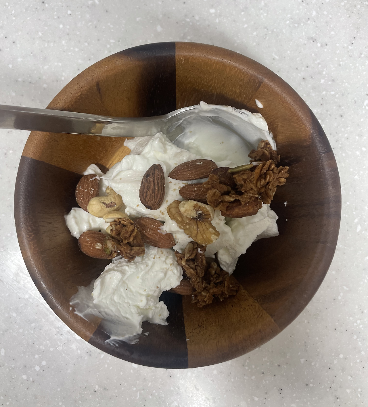 1. 아침 7시 50분: 그릭요거트 100g+ 견과류+그래놀라, 정말이지 그래놀라를 먹고 싶었다. 참지 못하고 그래놀라 4 덩어리(애플시나몬)를 넣었다. 견과류가 어제보다 적게 들어갔으니 퉁친 거라고 자기 합리화를 하며…ㅎ