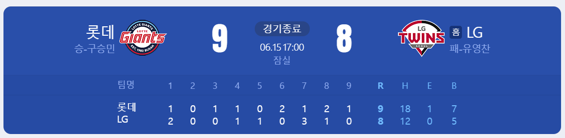 그리고 8회, 롯데는 2점 LG는 1점을 내며 8대 8로 이닝을 마쳤다. 9회엔 롯데만 1점을 추가하며 결국 8대9로 롯데가 이겼다. 스포츠가 쓰라린 게 8대9로 져도 0대9로 져도 그냥 1패다. 아직 시즌이 한창이기에 이 경기 하나로 뭔가 대단히 크게 바뀌는 건 아니지만 앉아서 보기만 했는데도 진이 빠진다. 이러고 내일 또 경기하는 선수들은 오죽할까 싶다.