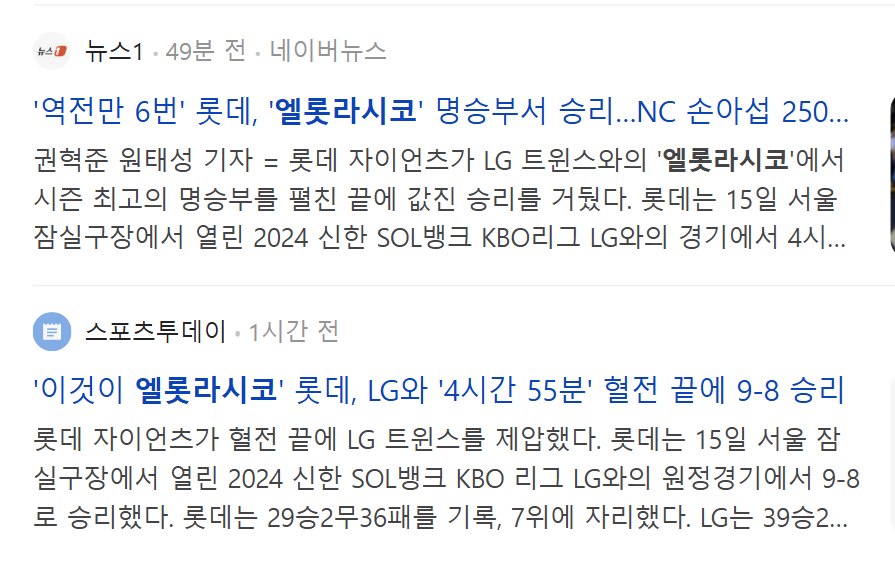 아무튼 롯데와 LG의 경기는 서로 물고 물리는 맞대결이 많이 펼쳐진다고 엘롯라시코라고 불린다. 스페인 축구 라이벌 레알마드리드와 FC바르셀로나의 경기를 부르는 엘클라시코에서 따온 말이다. 진정한 야알못 시절에도 왜인지 이 말은 희미하게 들어봤을 정도로 유명하다.