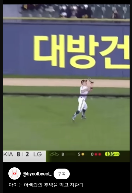 추천 영상을 따라가다 만난 짧은 쇼츠가 있다. 영상 제목은 '아이는 아빠와의 추억을 먹고 자란다'였다. 수비에 성공한 박해민 선수가 공을 외야에 있던 아이와 아빠에게 던져주는 장면이었다.